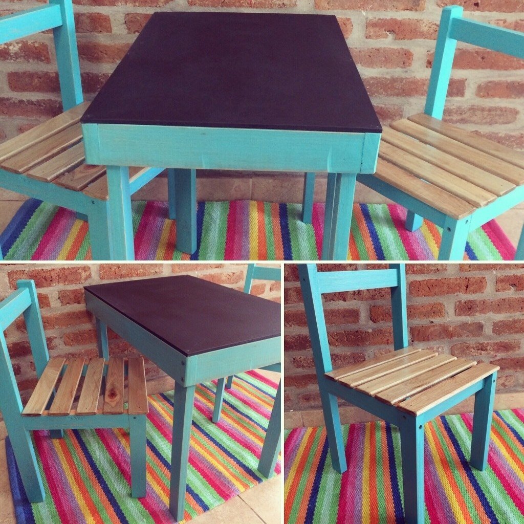 Juego de mesa y sillas para niños.
